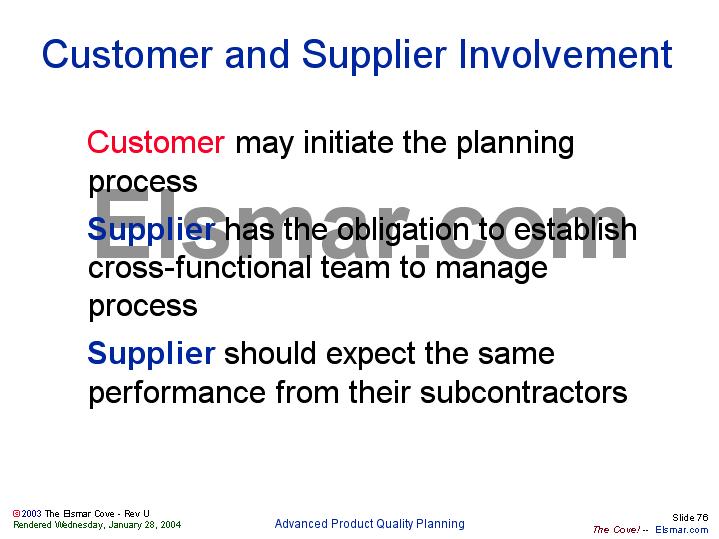 Supplier has the obligation to establish cross-functional team to manage process